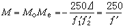 式中мo为物镜的垂轴放大率,мe为目镜的视觉放大率,