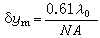显微镜的分辨率 (即分辨本领)与照明条件及照明光束的相干度等有关。显微镜的分辨率是以物面上能被分辨开的两点之间的最小距离δym表示。根据瑞利判据