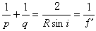式中p为物距,q为像距,R为反射镜半径,i为掠射角。