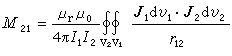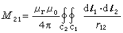 如果C1与C2为粗导体回路,见图3,并且导体的磁导率与其周围空间均匀线性媒质的相等,则诺埃曼公式修改为