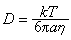 式中D是扩散系数,t是时间。设t=τ,由前面所提到的原理可知,<x2>等价于<(Δx)2>。从涨落理论中布朗粒子运动的朗之万方程出发,在不出现外力(比如选择粒子运动在水平面 x 方向的投影)时,应用维里定理对大数粒子求平均,再应用能量均分定理,在宏观短的时间(比如大于10-5秒)内,也可以导出上式,并算出