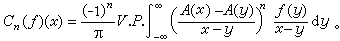 本性有界,C1(ƒ)对ƒ来说是L2到L2有界的。但由于这个算子不是卷积算子,这个猜测较难验证。直到1965年才被A.P.考尔德伦用复杂的复分析技巧加以证明。对DnH,与A作n次的交换子运算,便得到高阶奇异积分的交换子(省略一个常数因子)