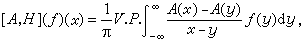如果在L2(R)中取T1=A为用函数A(x)作乘法的算子,即A(ƒ)(x)=A(x)ƒ(x),取T2为奇异积分即希尔伯特变换H或它与微分算子