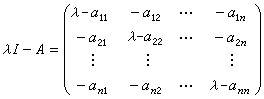 ³ÆÎªA µÄÌØÕ÷¾ØÕ󡣯äÐÐÁÐʽ|λI-A|ÊÇF[λ]ÖеÄÒ»¸öÊ×ÏîϵÊýΪ1µÄ n ´Î¶àÏîʽ