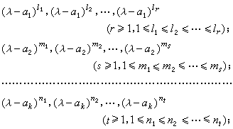ÕâÀïµÄÖîφi(λ)¾ùÓÉA(λ)Ωһȷ¶¨£¬ÇÒφ1(λ)|φ2(λ)|¡|φr(λ)£¬Ê×ÏîϵÊý¾ùΪ1¡£