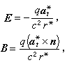 ʽÖÐa*´ú±ít*ʱ¿ÌÁ£×ӵļÓËÙ¶È¡£E ÖеĵÚÒ»Ïî(ÒÔ¼°ÏàÓ¦µÄB)Ö»ºÍt*ʱ¿ÌÁ£×ÓµÄλÖúÍËÙ¶ÈÓйأ¬¶øÓë¼ÓËÙ¶ÈÎ޹ء£ËüÔÚr*´óʱ˥¼õ½Ï¿ì