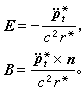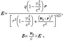 ¶ÔÓÚ´øµçÁ£×Ó×÷µÈËÙÔ˶¯µÄ¼òµ¥Çé¿ö£¬vµÈÓÚ³£Ê¸Á¿v0¡£ÕâʱE ºÍB¿ÉÒÔͨ¹ý¼´Ê±µÄr£¨´Ótʱ¿ÌÁ£×ÓλÖõ½³¡µãµÄ¾àÀ룩±íʾ³öÀ´¡£½á¹ûΪ