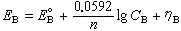 式中n为电极过程的电子转移数;E┱为标准电极电位;CA为浓度;ηA为A离子析出时的超电压。B离子析出时的电位为: