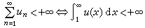µ±ÕýÏî¼¶ÊýµÄÏî unµ¥µ÷µÝ¼õÇ÷ÓÚ0ʱ£¬ ×ÔÈ»µØÈÝÒ×À©³ä³ÉÒ»¸öµ¥µ÷µÄÁ¬Ðøº¯Êý u(x) ʹµÃun=u(n)¡ú0¡£ ÕâÑù±ã¿ÉÖ±¹ÛµØ°ÑÎÞÇî¼¶ÊýͬÎÞÇî»ý·Ö½øÐбȽ϶øµÃµ½»ý·ÖÅб𷨣º