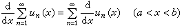 ÔÚÇø¼ä¦Á<x<bÄÚÊÕÁ²£¬¸÷Ïî¶¼¾ßÓÐÁ¬ÐøµÄµ¼Êý¡£ÓÚÊÇ£¬ÈôÖðÏîÈ¡µ¼ÊýËùµÃµÄ¼¶ÊýÔÚ¸ÃÇø¼äÄÚÒ»ÖÂÊÕÁ²£¬ÔòÔ¼¶ÊýµÄºÍÒ²¾ßÓÐÁ¬ÐøµÄµ¼Êý²¢ÇÒ¿ÉÒÔÖðÏî΢·Ö£º