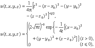可用来构造出该方程的“通解”以及格林函数(见椭圆型偏微分方程)。对于三维的波动方程和热传导方程,它的基本解