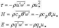 直接测定法湍流动量(τ)、感热(H)和水汽的铅直通量(E)可分别表示成