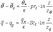 式中 k是卡门数;Prt是湍流普朗特数;Sct是湍流斯密特数;φM、φH和φE分别是相应属性的稳定度函数。在中性层结稳定度时,φM=φH=φE=1,由上列三式的积分,可求得海面大气层中的风速、位温和比湿的廓线: