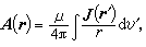 式中J)为电流密度。方程(3)在无界空间的特解是