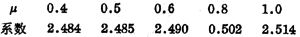 式中R为行星半径,σ 为卫星密度,σ '为行星密度,系数2.45539是洛希求出的近似值,他假设卫星质量同行星质量的比值 μ =0。若μ ≠0时,系数值略有变化。根据G.H.达尔文的计算,系数值和μ 值的关系如下: