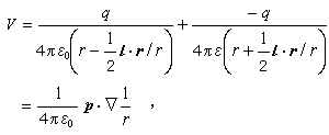 +q和-q分别在观察点P(r)产生的电位的代数和即电偶极子产生的电位