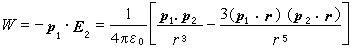 如果点偶极子 p1 处于另一偶极子 p2 产生的电场E2(r)中,则p1的位能即相互作用能为