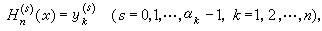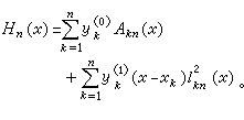 为结点组的(α1,α2,…,αn)阶埃尔米特插值多项式。作为特殊情况,若诸αk都为1,则Hn(x)就是ƒ(x)的拉格朗日插值多项式;若n=1,则Hn(x)为ƒ(x)的α1-1阶泰勒多项式。最使人们注意的是诸αk都为2的情况,这时Hn(x)为次数不高于2n-1的代数多项式。如果写