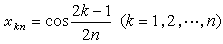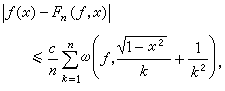 为函数ƒ(x)的埃尔米特-费耶尔插值多项式。如果取切比雪夫多项式Tn(x)=cos(n arc cos x) 的零点全体为结点组, 则有绝对常数с,使得对于[-1,1] 上的任一连续函数ƒ(x)都有