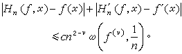 ,(k=1,2,…,n)。当取αkn=ƒ(γkn)时,考虑S2n-1(ƒ,x)对ƒ(x)的逼近,也可以考虑埃尔米特插值多项式对函数及其导数的同时逼近。例如,取