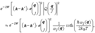 它给出k┡空间中的曲面Sj,即由中子德布罗意波的波矢端点组成的曲面。这个曲面称散射曲面。不同支的点阵振动给出不同的散射曲面。在每一方向上散射中子只有分立的频谱。这就直接给出了点阵波的色散关系。散射中子的流强正比于散射振幅的二次方,相应于式(4),它应正比于: