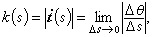 是切向量 t(s)和t(s+Δs)之间的夹角。故曲率度量了曲线上相邻两点的切向量的夹角关于弧长的变化率。直线的曲率恒为 0。圆周的曲率等于其半径的倒数。当曲线C在p(s)点的曲率k≠0时,在p(s)点的主法线上沿n(s)的正向取点Q,使得pQ=1/k,在p点的密切平面上以Q为中心,1/k为半径的圆称为曲线C在p点的曲率圆或密切圆,Q和1/k分别称为曲率中心和曲率半径。密切圆是过曲线C上p(s)点和邻近两点的圆的极限位置。