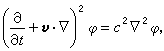 其中嗞为速度势(声波引起的质点运动速度为-墷嗞), v为媒质运动速度,с为媒质中的声速。当v=0时,式(1)即化为寻常的波动方程。当v为常数时(定常流),式(1)的平面波解可写作下列形式