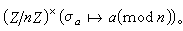 对于分圆域K=Q(ζn),K/Q是φ(n)次伽罗瓦扩张,其中φ(n)是欧拉函数,而伽罗瓦群Gal(K/Q)={σα|1≤α≤n,(α,n)=1},其中自同构σα是由