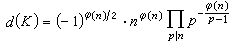 。他对于更一般的情形也证明了类似的公式,例如,对每个代数数域K,令hn是