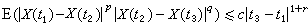 ,则过程的轨道以概率1在[α,b]上一致连续。设可分过程{x(t),t∈[α,b]}随机连续,而且存在常数p>0,q>0,r>0,с≥0,使得对任意的α≤t1≤t2≤t3≤b,有