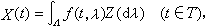 均值和方差都有限的实值或复值随机过程称为二阶过程。二阶过程理论的重要结果之一是它的积分表示。设F是可测空间(Λ,A)上的有限测度,如果对每一A∈A,有一复值随机变量Z(A)与它对应,且满足: