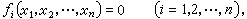 n个变量n个方程(n >1)的方程组表示为