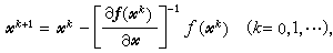 牛顿法基本思想是将非线性问题逐步线性化而形成如下迭代程序: