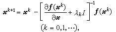 奇异或严重病态时,可引进阻尼因子λk,得到阻尼牛顿法,即