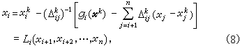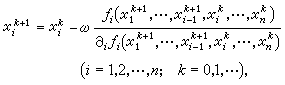 ;ω为迭代参数,当ω=1时就是赛德尔-牛顿迭代法,这类方法对解维数高的稀疏的非线性方程组是有效的。
