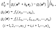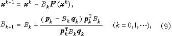 ,称为逆拟牛顿公式。计算时先给出尣0及 B0,由(9)逐步迭代到满足精度要求为止。每步只算 n个分量函数值及O(n2)的计算量,比牛顿法一步计算量少得多。理论上已证明,当尣0及B0选得合适时,它具有超线性收敛速度,但实践表明效率并不高于牛顿法,理论上尚无严格证明。