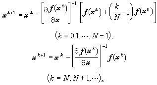 为减少解线性方程组次数,提高效率,可使用修正牛顿程序