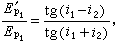 =0,反射光中没有平行入射面的偏振光,只有垂直入射面的偏振光。由于sini1/sini2=n,此时i1=ip,得i1=ip=tg-1n。对于n=1.50的玻璃,ip=57°。这个角称为偏化角,亦称布儒斯特角,是D.布儒斯特在1815年发现的。