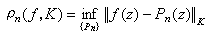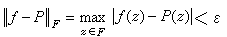 其中最小值是对于使|ƒ(z)-Pα(z)|在K上达到最大值的全体点取的。由此可以得到通常函数逼近论中的切比雪夫定理。由于直接应用这个结果来找最佳逼近元不是很方便,因此Ε.Я.列梅兹、Β.К.伊万诺夫等找出了一些比较适合于具体应用的分析方法。