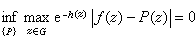 是否成立,其中h(z)是定义在強上的某个正函数,称e-h(z)为权函数,而下确界是对于所有多项式取的;或按面积平均逼近的问题: