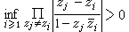 这里典型的问题是:给了两个复数序列{zi},{wi},其中zi互不相同,研究在什么条件下存在ƒ(z)(有一定的分析性质),使 ƒ(zi)=wi(i=1,2,…)。这里{zi}经常位于复平面上的某个区域G 中(G也可以是全平面)。对于函数ƒ(z)除了解析性以外,还可以要求满足一些其他的条件。例如,设G是|z|<1,|zi|<1,可以要求ƒ(z∈hp,0<p ≤∞(见hp空间)。R.奈望林纳在h∞中考虑这个问题,给出了加在{wi}上的一个充要条件,但是这个条件很不实用。1958年L.卡尔森解决了这个问题,用求极值的方法给出了一个容易判别的充要条件: