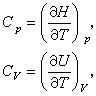 应用热力学第一定律和热力学态函数,还可将CP0和Cv表示为如下的常用形式