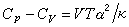 式中H和U为系统的态函数焓和内能。CP0和Cv均可由实验测出,因为实验装置中固定压强较为容易,所以通常测量的是定压热容,而定容热容是通过测量等压膨胀系数α 及等温压缩系数 k,利用关系