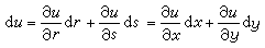 变量替换在微分形式(9)中,变量x、y既然当作动点P的函数,如(8)所示,它们也就是动点P在任一别的坐标系(r,s)中的坐标的函数: