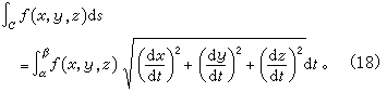线积分如果我们类似地考虑空间中一条光滑的(或逐段光滑的)曲线C上关于弧长的微分ds的积分