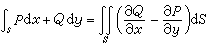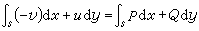 其中曲线s,作为平面区域S0的全部边界,是逐段光滑的,它的切线的定向{dx,dy}到S0的外法线{dy,-dx}的旋转方向同正y轴到正x轴的一致。这个(法线形式的)曲线积分通常简记为(切线形式)
