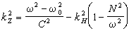 式中kZ和kH分别为铅垂方向和水平方向的波数。从上列方程可以确定在以ω为纵坐标、kH为横坐标的图上波动能够传播的区域。只有当k婎>0时,波动才能传播。符合这一条件的,图2中用阴影标出。在左上方的阴影区,声波可以传播;而在右下方,重力波能传播。至于在无阴影区域,不存在波动,只存在不传送能量的驻波。有人认为,正是这样的驻波形成了五分钟振荡。这种驻波很可能是波在图2中上下两层来回反射所造成的。图2中的两条实线是波动能传播区域的分界线,这相当于一个反射界线。这两条实线都是对温度T0画出的。对于另外两个温度T1和T2(T1<T0<T2),声波传播区的边界是两条虚线。