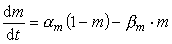 Ϊ×î´óK+ºÍNa+µçµ¼£¬¦Án¡¢βn¡¢¦Ám¡¢βm¡¢¦Áh¡¢βh·Ö±ð±íʾÏà¹Ø¹ý³ÌµÄËÙÂʳ£Êý£¬ËüÃÇÊÇĤµçλµÄº¯Êý¡£