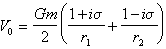 式中V0为双不动中心构成的引力场位函数。阿克肖诺夫为了使V0尽量接近于真实的地球引力场位函数V,取V0为: