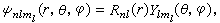 当电子波函数ψ同时满足式(1)、(4)、(5)时,它描写电子的E、L2、Lz同时有确定值的状态。此时波函数用r、θ、嗞作为变量,并用量子数n、Л、ml作为标记。则有